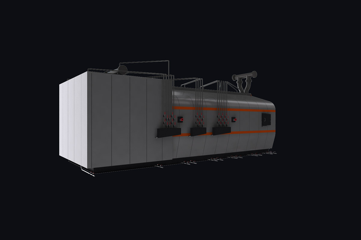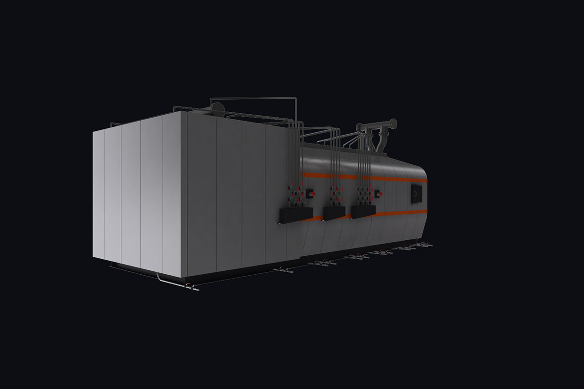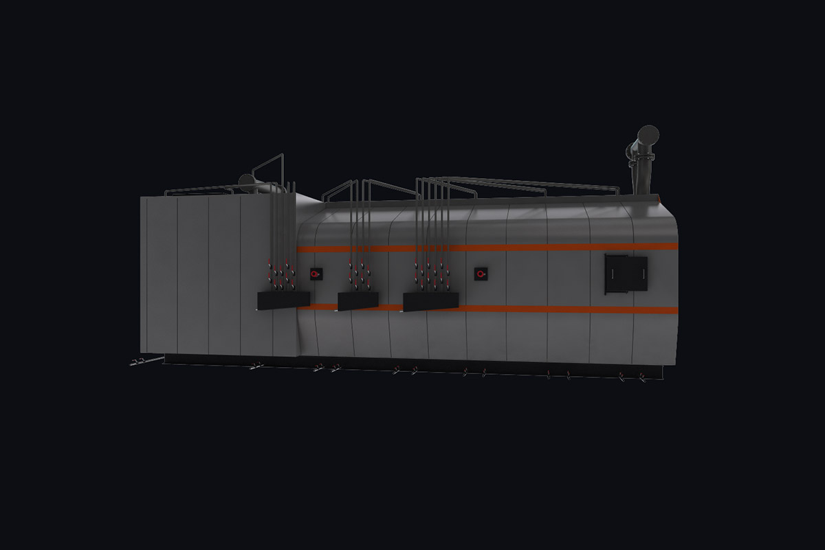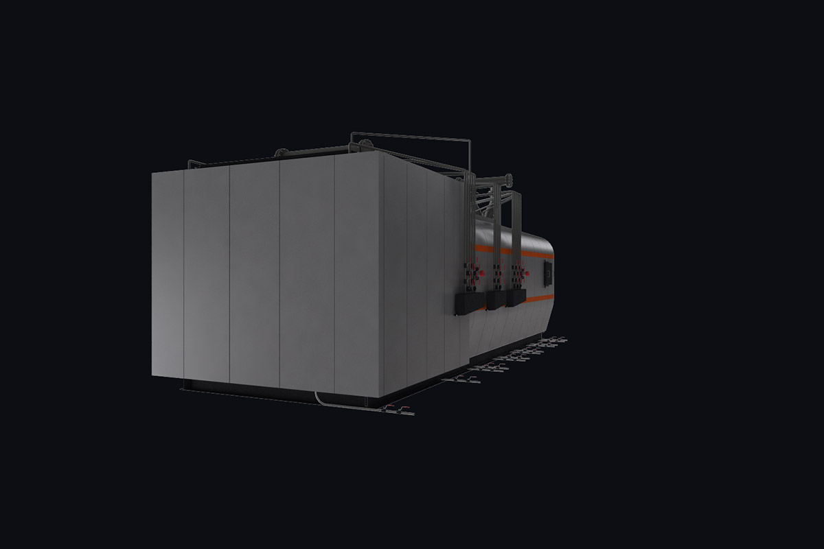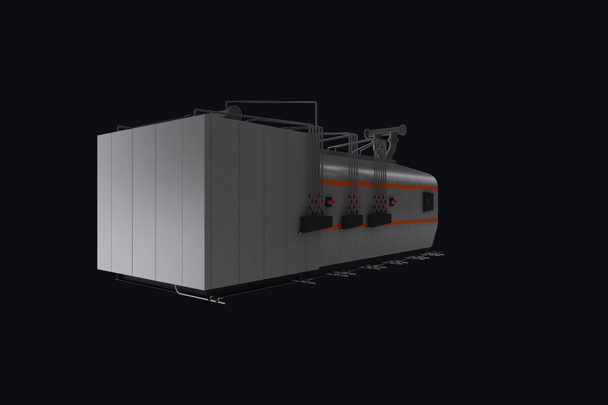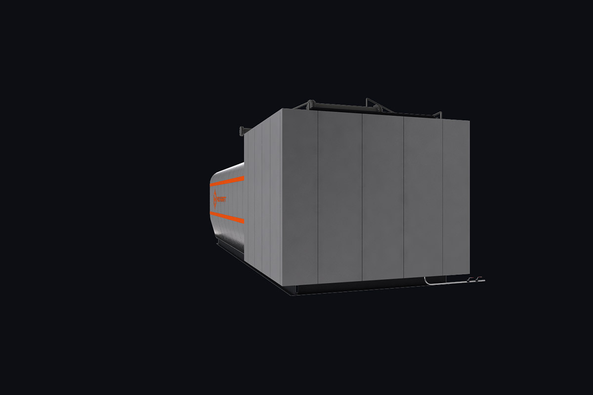 Котлы поставляются единым блоком на раме с установленной тепловой изоляцией и наружной декоративной обшивкой.
