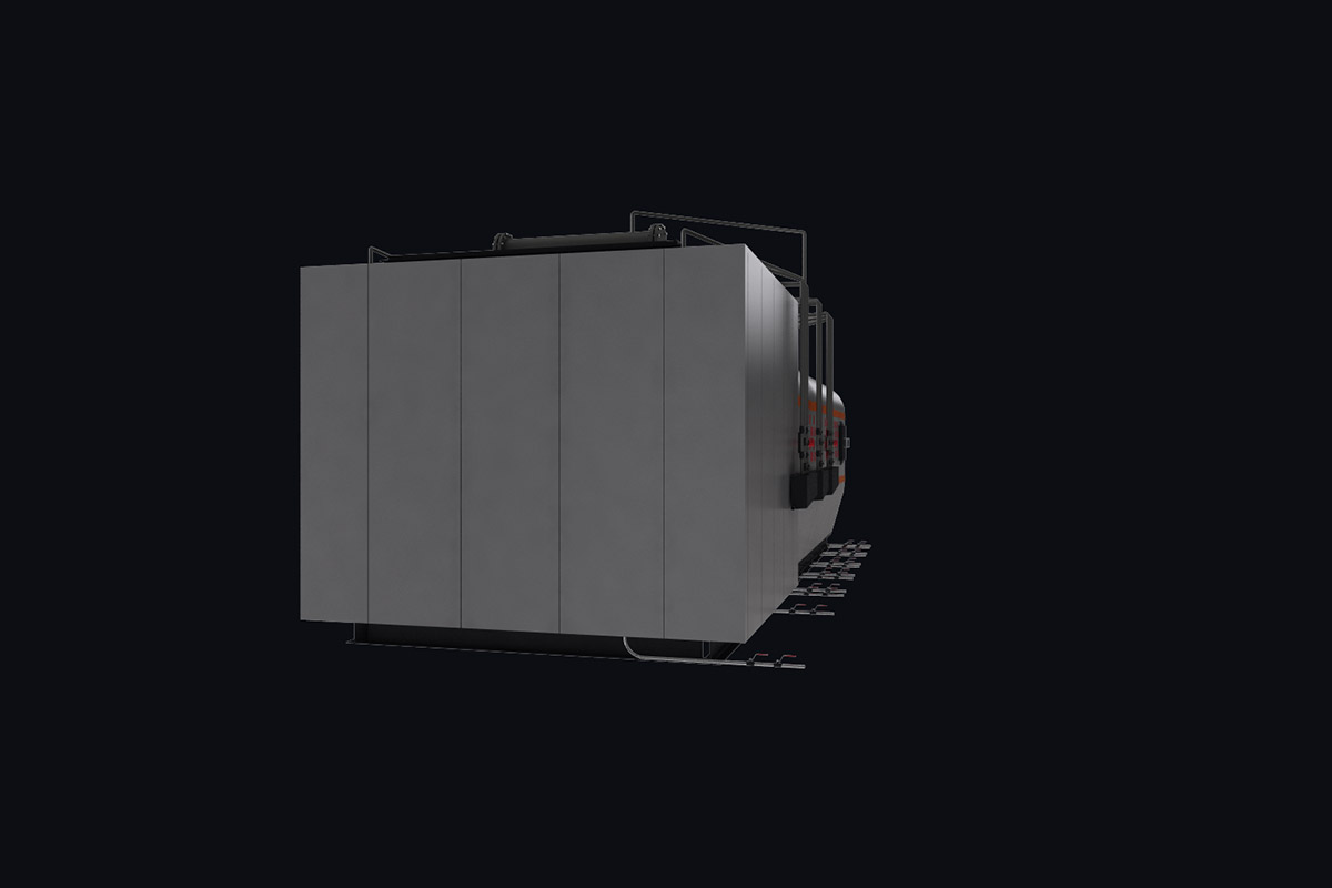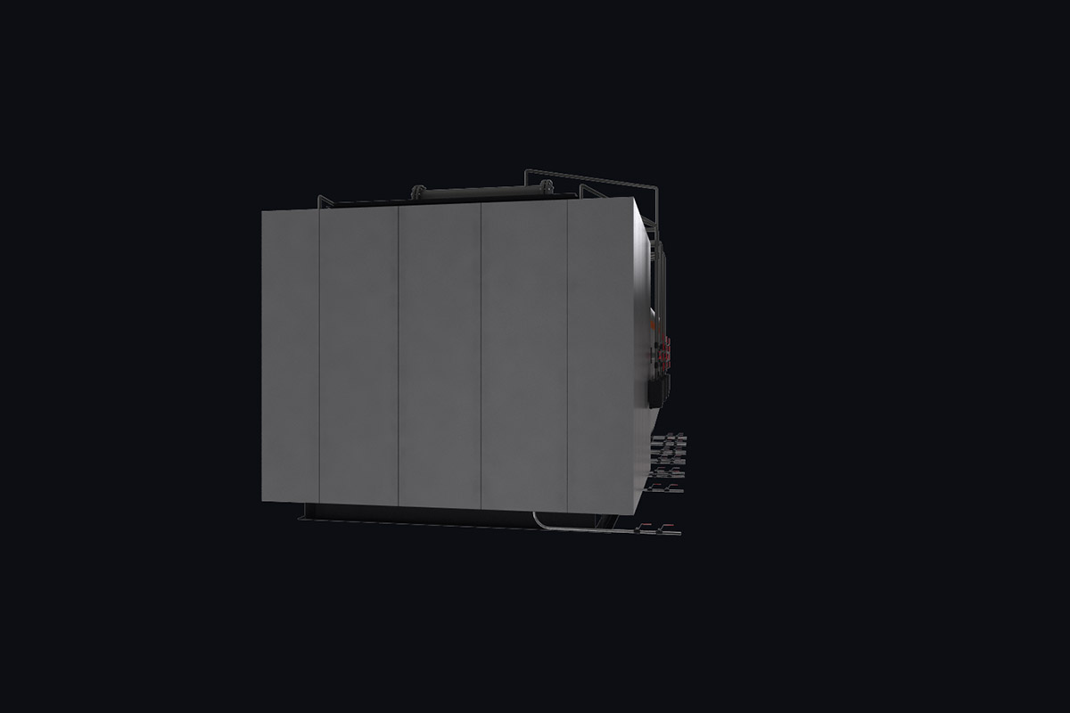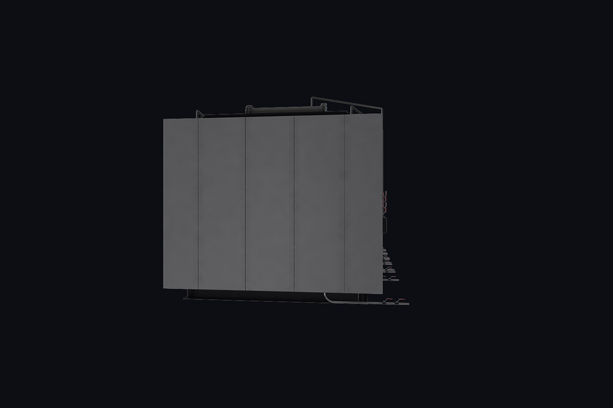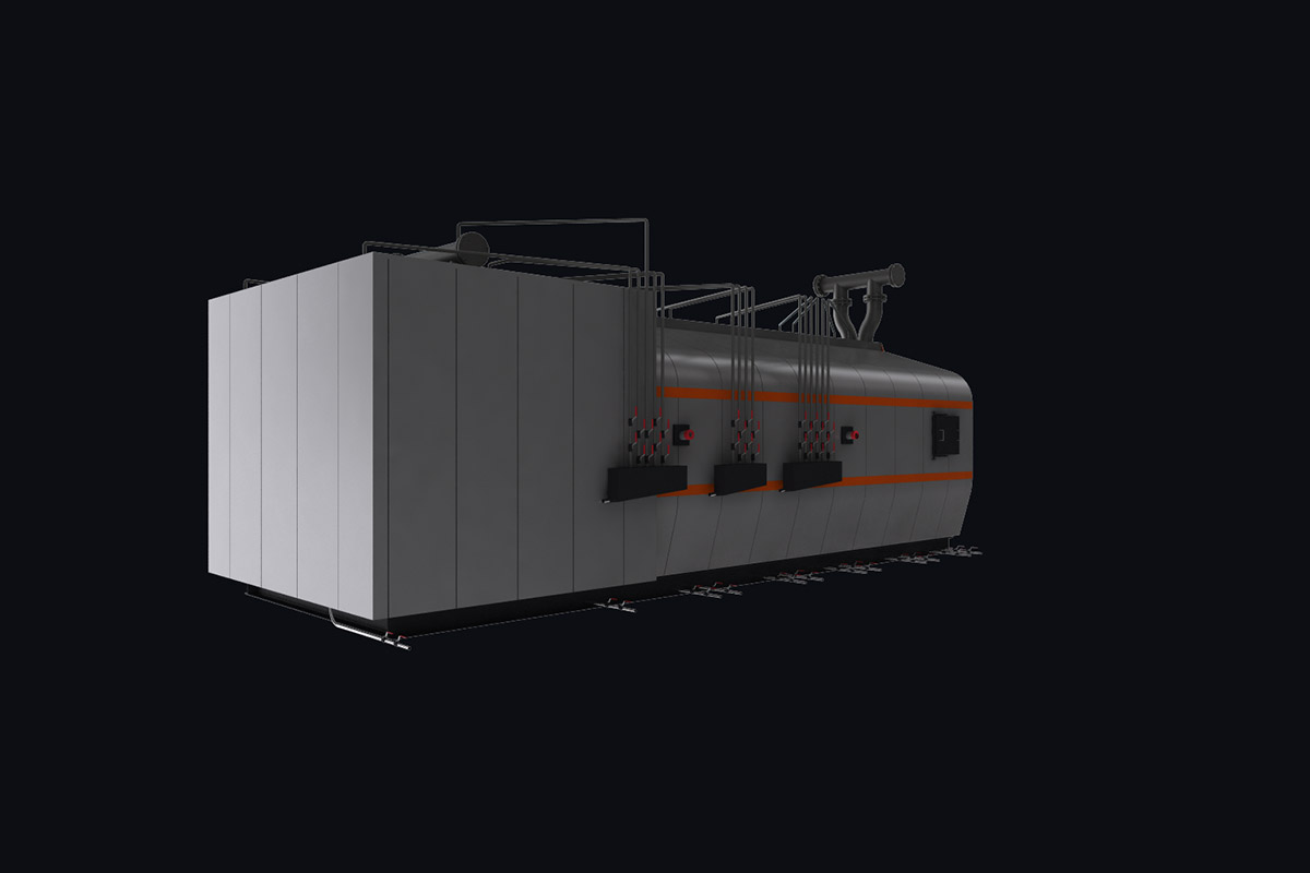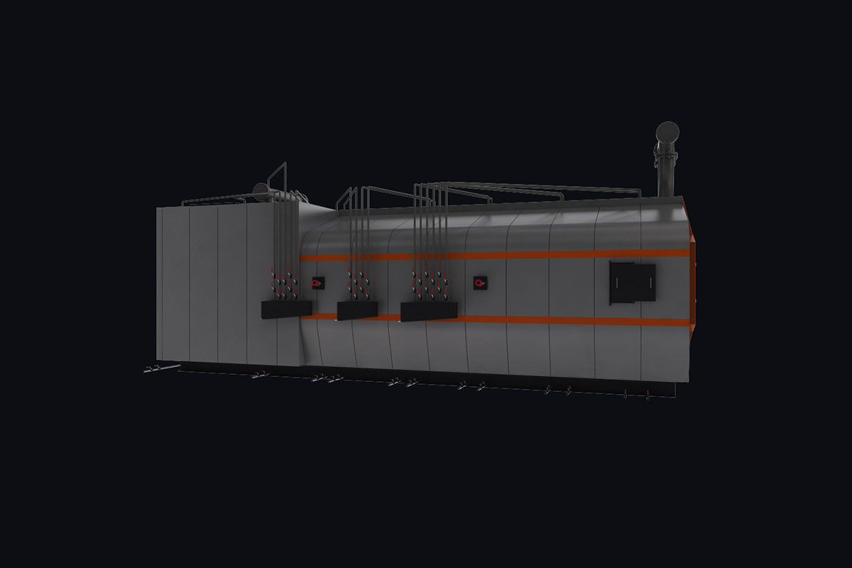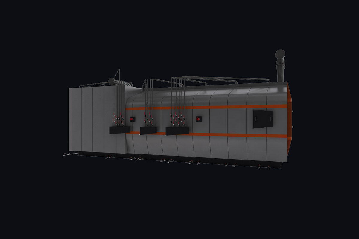Котлы поставляются единым блоком на раме с установленной тепловой изоляцией и наружной декоративной обшивкой.