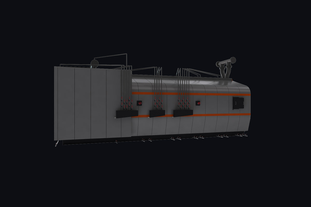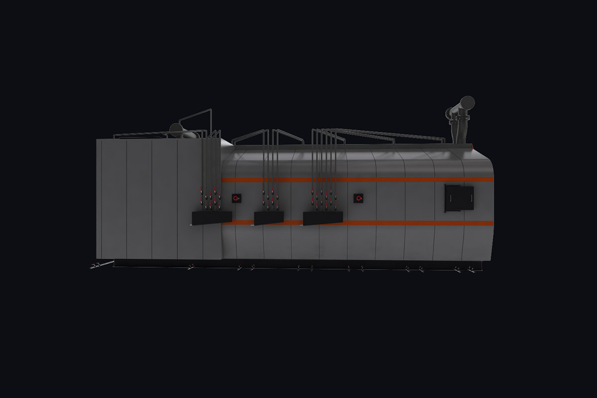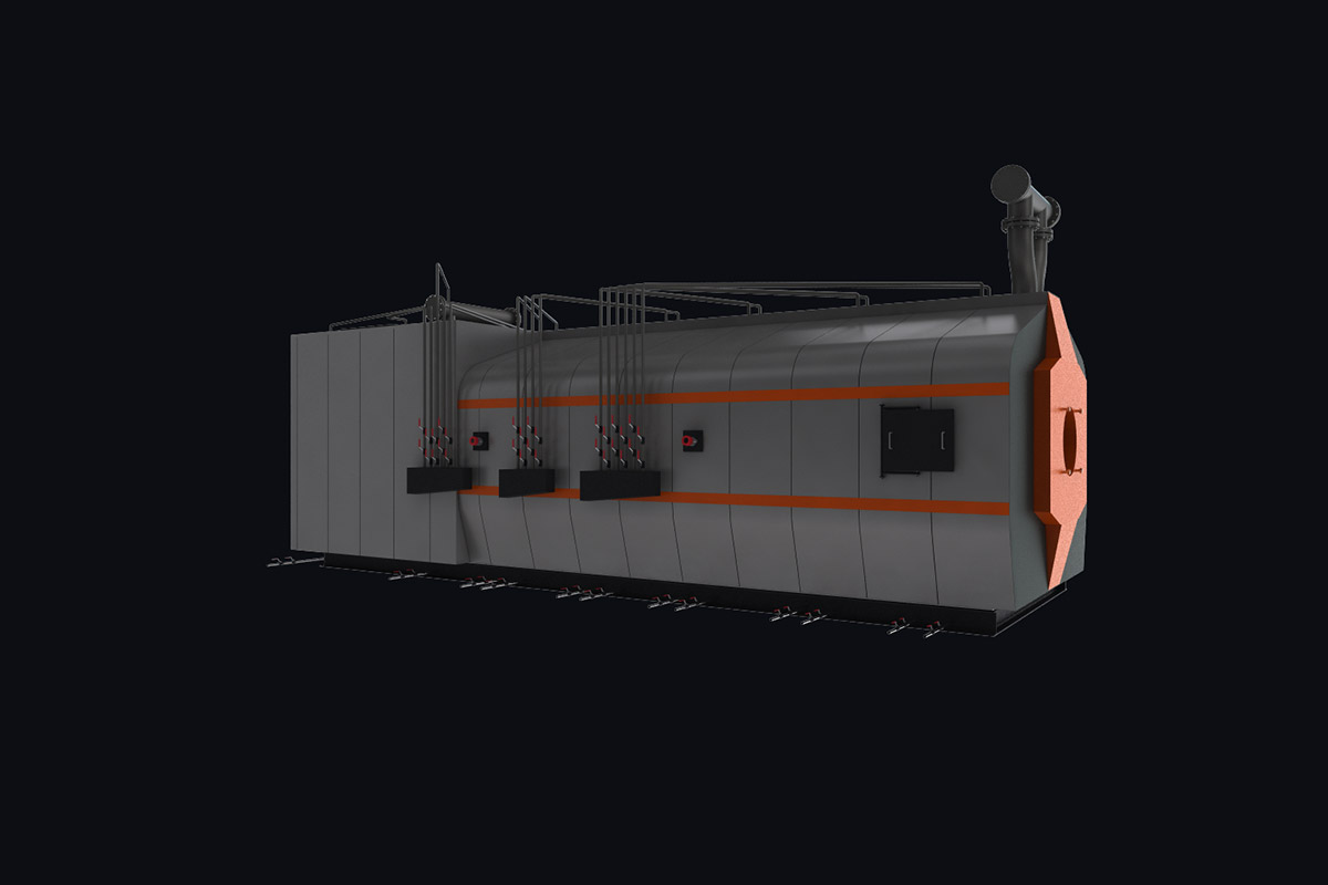 Котлы самонесущие, имеют подвижные и неподвижные опоры которые опираются на раму. Для монтажа котла специальный фундамент не требуется. Нагрузка от рамы равномерно распределена на фундамент.
