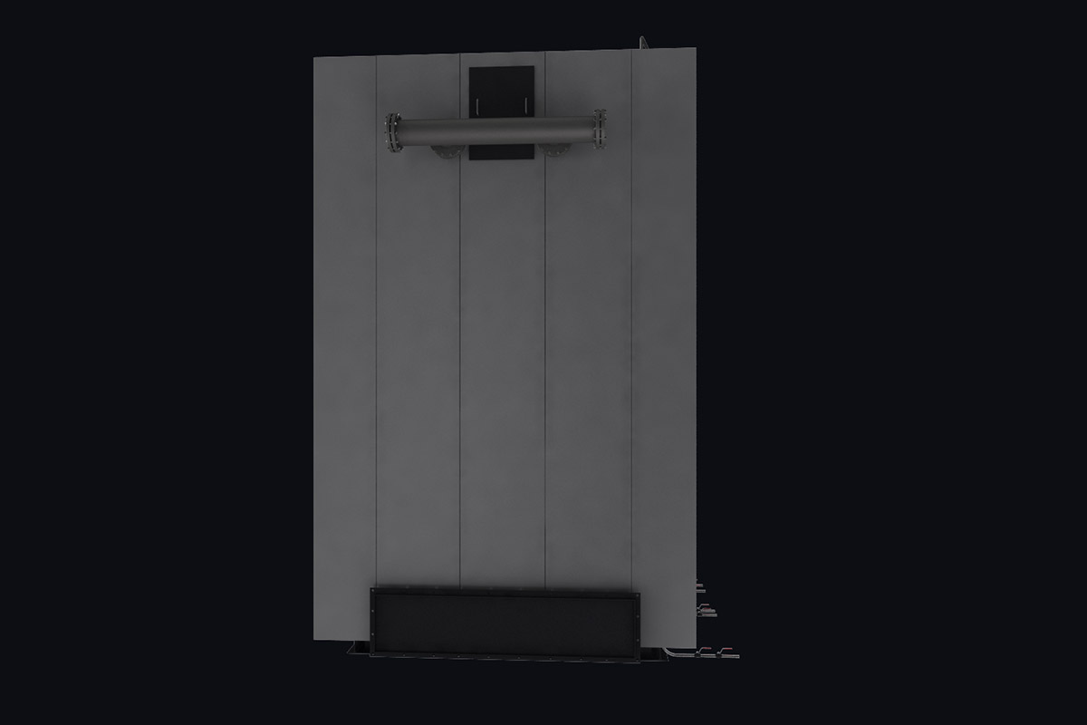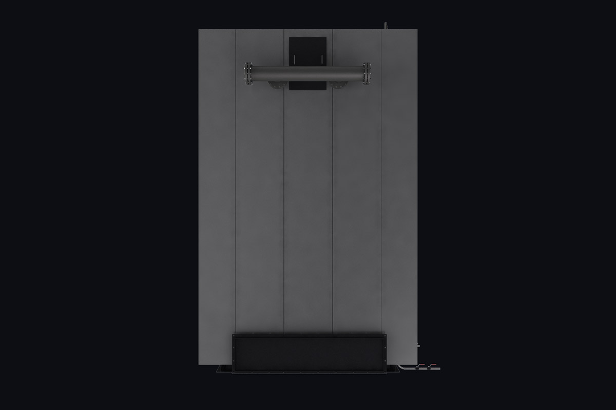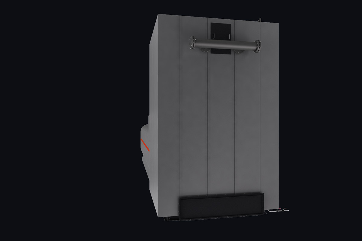 Конвективная поверхность нагрева, образованная двумя ходами газов, находится следом за топочной камерой, состоит из U-образных ширм из труб ø 28х3 с шагом S1 =64 мм и S2=32 мм. Ходы разделены экраном из труб ø51х3,5 мм, который является поверхностью нагрева топочной камеры в зоне разворота газов. Боковые стены конвективного газохода закрыты вертикально расположенными трубами ø 51х3, 5 мм и в варенными в коллекторы ø219х10 мм. В верхней части конвективной поверхности, в зоне разворота газов из первого хода во второй в котлах EUROTHERM-20 располагаются лазы для осмотра поверхностей нагрева. На боковых экранах котла предусмотрены гляделки для наблюдения и контроля процесса горения, а также лаз для осмотра топочного пространства. При сжигании топлива образуется факел, который должен равномерно заполнять топочную камеру и не затягиваться в конвективную часть котла. Не допускайте касания факелом поверхностей нагрева. Горячие продукты сгорания (газы) выходят в конце топки с температурой 1000-1100 °C и проходят через секции конвективного блока, где их температура снижается до 170-220 °C, выходят в газоход.