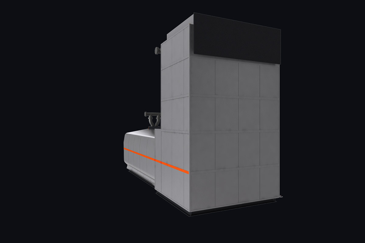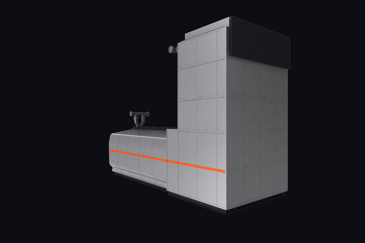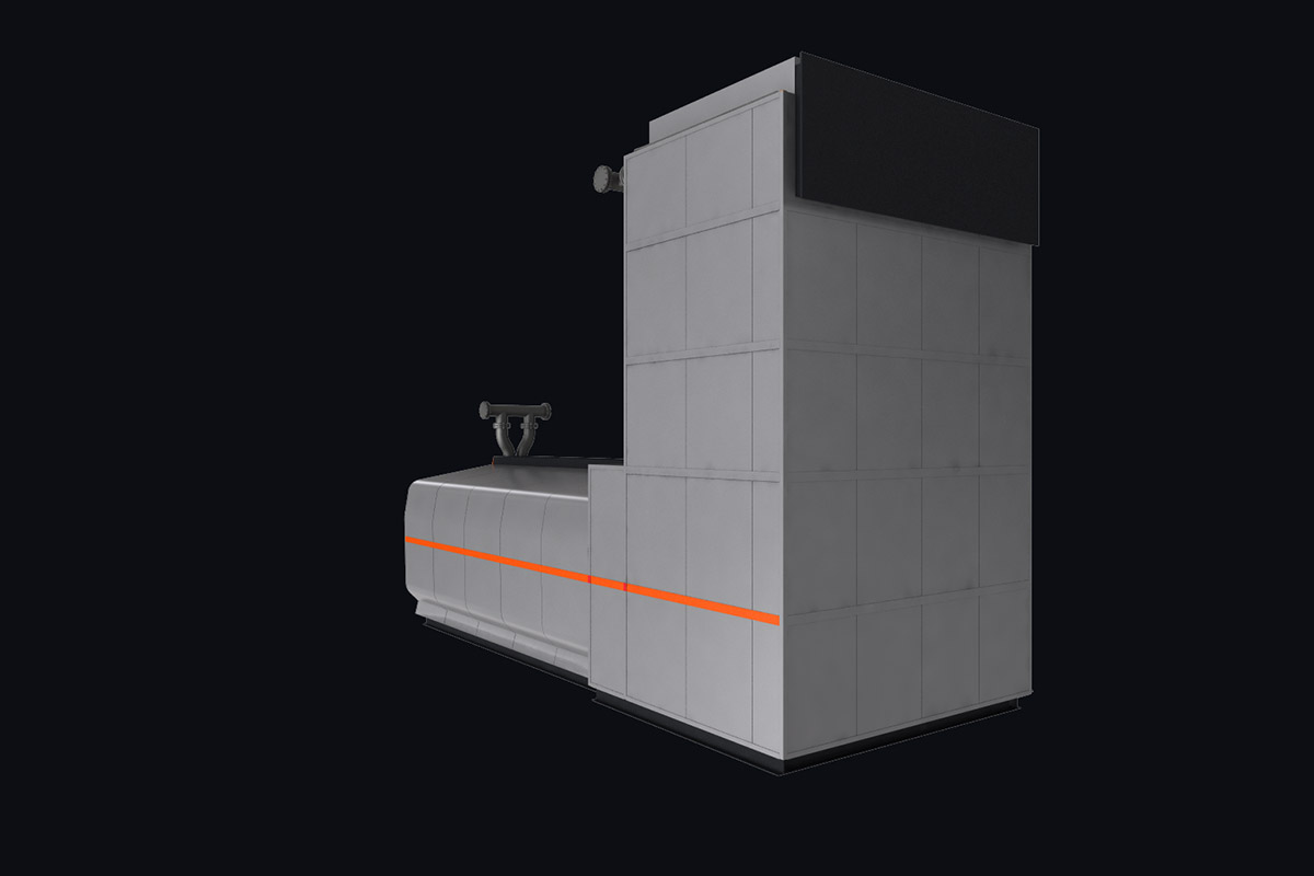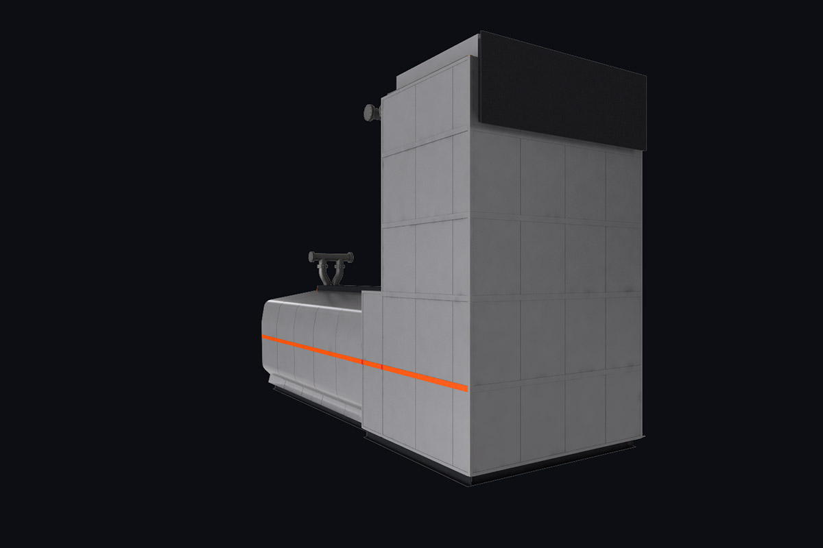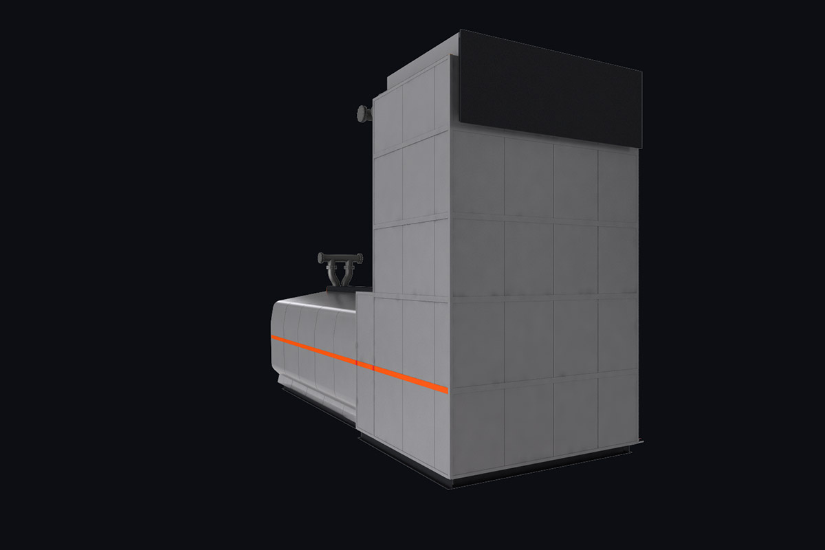 Блок топочный, состоящий из фронтового и двух боковых экранов, экранирован трубами ø51х3,5мм с шагом 64мм, входящими в коллекторы ø273х11 мм. Между трубами ввариваются мембраны шириной 20 мм, обеспечивающие газоплотность панелей топки котла. Трубы всех экранов, расположены вертикально. Фронт котлов охлаждаемый, в нем располагаются амбразуры горелок.